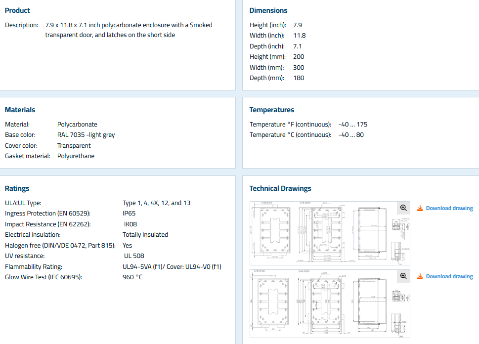 - Ratings: UL Type Type 1, 4, 4X, 12, and 13:IP65; IK08