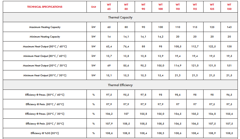 - A wide range of capacity (65, 80, 90, 100, 110, 115, 125 and 150 kW) in individual boilers and up to 2400 kW in CASCADE systems,