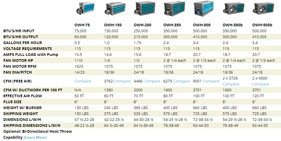 High OutputWith tuned axial fans and the large vent area design, OMNI Waste Oil Heaters have the highest warm air output, most CFM`s and quickest recovery times in the industry. This means less waste oil burnt, less run-time, less electricity used, and less wear and tear on the equipment for an overall better experience.