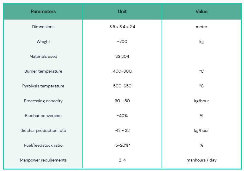 - Manual and Auto Mode option on feeding biomass for burner and pyrolysis chamber.