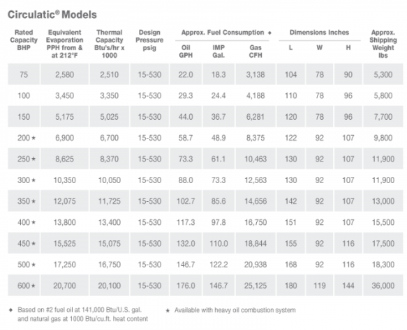 Steam from: 75 BHP to 600 BHP