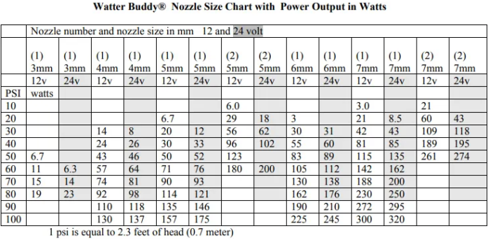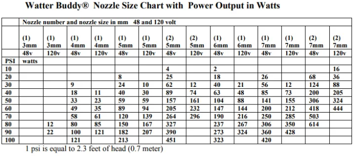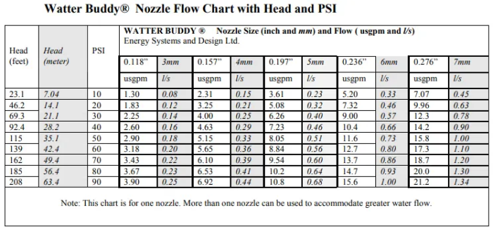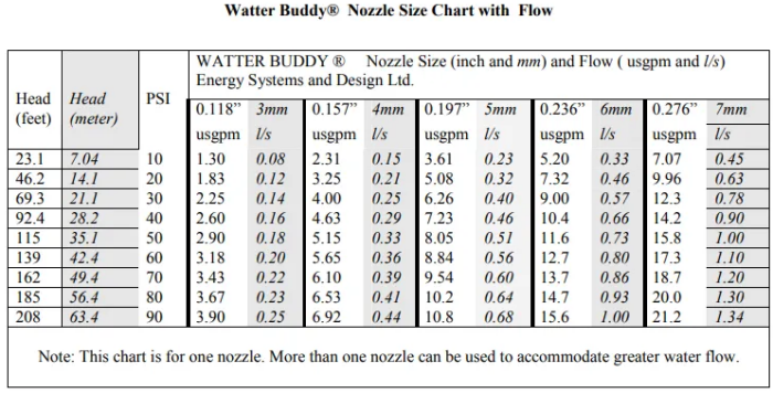 - Range of brass nozzles supplied to match flow rate of source