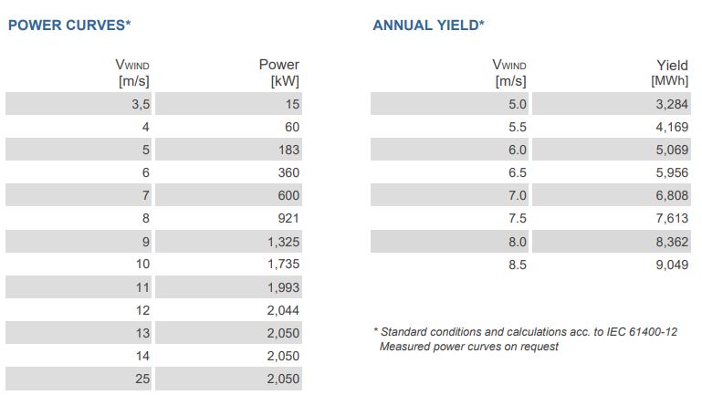 - Rated power: 2.05 MW