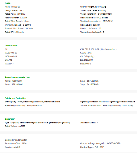 Ghrepower - Model FD21-60 -Wind Turbine