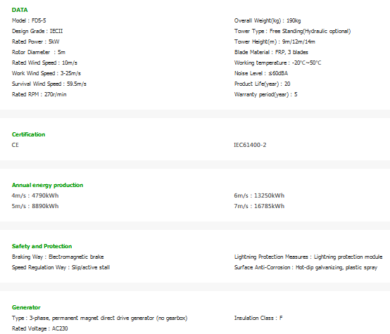 Ghrepower - Model FD5-5 -Wind Turbine