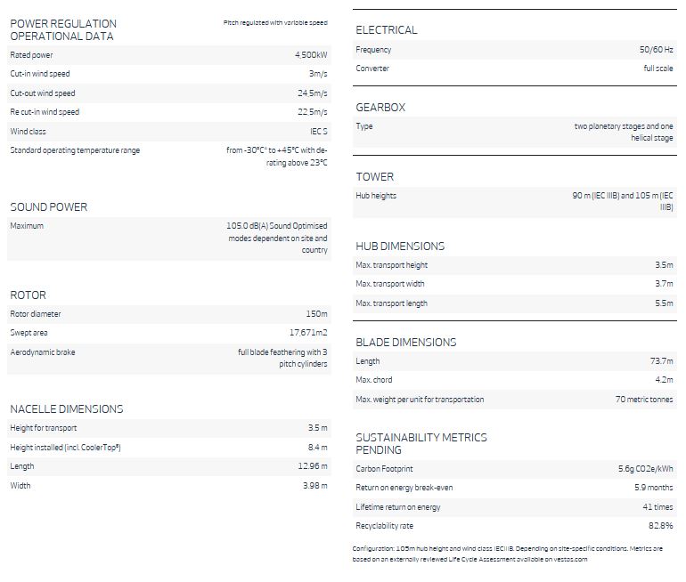 Where permits allow, the higher rating variant delivers an over 3 percent increase in annual energy production compared to the V150-4.2 MW™, while maintaining the same application space and noise level.