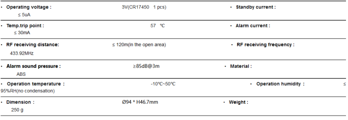 This wireless heat detector offers fixed temperature detection, suitable to any household or commercial applications. The detector is made up of an externally mounted thermistor with a specially designed cover that protects the thermistor while allowing maximum air flow. The thermistor reads the temperature from the air it takes in and transmits a signal representing the temperature to the MCU. If the temperature reaches or exceeds the trip point, the detector is triggered. The status LED flashes in red and alarm signal is output. The detector is an ideal unit to detect rapid fire developments in houses, shops, hotels, restaurants, offices, schools, banks, libraries and etc.It has a wireless network alarm function; it can form a wireless LAN alarm system through the host; wireless connection, no wiring, easy installation and construction.
