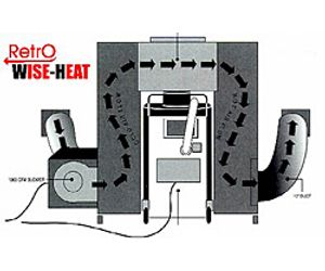 Located outside the facility, WiseHeatR pulls cool air from low inside the building, heats it and circulates the heated air back inside.