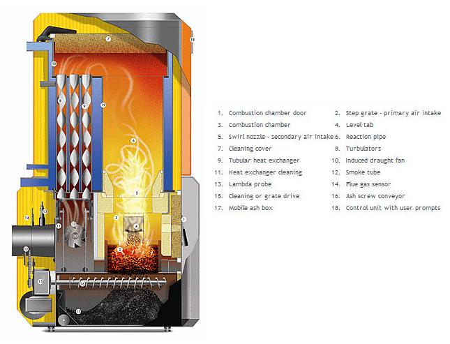 - Self-cleaning step grate: The incandescent bed can be changed, subject to fuel