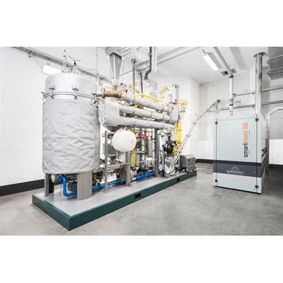 Consuming approximately 40 kg/h, the system generates about 50 kW of electricity and about 110 kW of heat respectively. This means that 1 kg of wood pellets yields 1.25 kW of electricity and 2.75 kW of heat.