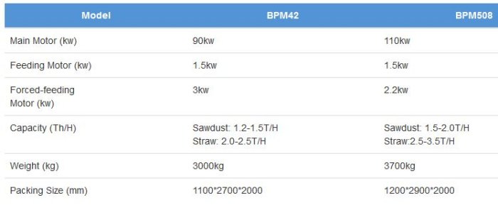 Diameter of Finished Wood Pellets: 6mm, 8mm, 10mm, 12mm. This type of wood pellet mills for sale is ideal biomass pellet making machine. It is featured of smooth operation, high capacity, low noise, vibration and energy consumption. The average capacity of BPM508 pellet mill for wood pelletizing can reach up to 2Ton/h.