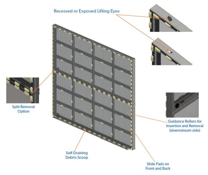 - Each screen contains a self-draining debris scoop to capture screened material on manual removal.