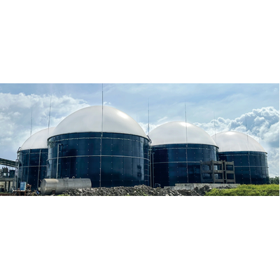 Excellent choice for anaerobic digestion processes and biogas storage, airtight for biogas collection and odor control, integrated into anaerobic fermenters. The double membrane cover is composed of an outer membrane, an inner membrane and a bottom membrane, plus a series of control components, safety components and measuring components. Center Enamel's double membrane roof has the advantages of strong airtightness, UV resistance, and easy installation, providing innovative, durable, cost-effective and high-performance gas storage solutions for anaerobic digestion and biogas applications. During operation, the outer membrane remains permanently inflated, while the inner membrane is inflated and deflated according to the biogas production. The operating characteristics of the double membrane roof make it a suitable choice for biogas pressurization process applications.
