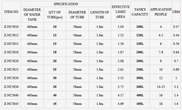 ZILAN - Model Z-NC5815 -Heat Pipe Solar Water Heater