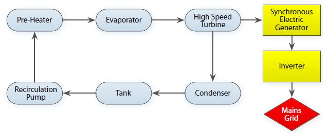 - Totally dry working fluid, which means no turbine blade erosion, giving the system high reliability and reduced maintenance costs as well as fewer controls;