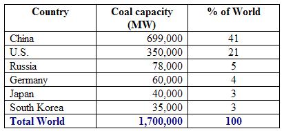 Coal generation capacity: World, 2011 ( MW)