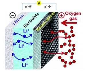 At a nominal electropotential of about 3.27 volts, the theoretical specific energy for a lithium air rechargeable battery is 5,532 Wh/kg , which is about 10 times that of Li-ion battery chemistry that has a theoretical specific energy of about 400 Wh/kg. The Lithium Air Battery technology developed by Lloyd Tran is based on proprietary Nanocomposite Technologies.