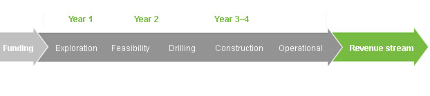 The Feasibility Study is the deciding point at which decisions are made as to how and when to commence the active element of the project. A drilling location will have been determined upon and, the drilling plan, compiled during the Feasibility Study, will be implemented.