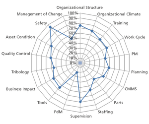 The first step in an improvement plan is to assess your current condition. An external organization brings an unbiased evaluation of your people, processes and equipment operation. An assessment of your Maintenance operation is provided through a detailed review of 18 areas of organization and a comparison against benchmarked standards.