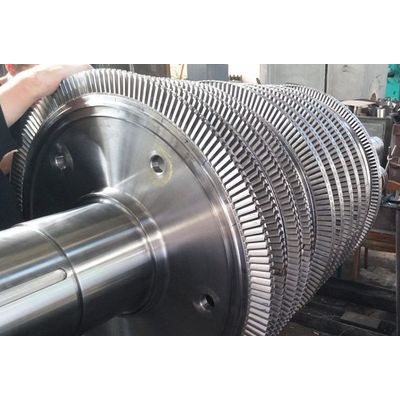 Working principle of steam turbine.Working principle of steam turbine depends on the dynamic action of steam. A high-velocity steam is coming from the nozzles and it strikes the rotating blades which are fitted on a disc mounted on a shaft. This high-velocity steam produces dynamic pressure on the blades in which blades and shaft both start to rotate in the same direction. Basically, in a steam turbine pressure energy of steam extracts and then it converted into kinetic energy by allowing the steam to flow through thew nozzles. The conversion of kinetic energy does mechanical work to the rotor blades and the rotor is connected to a steam turbine generator which acts as a mediator. Turbine generator collects mechanical energy from the rotor and converts into electrical energy. Since the construction of steam turbine is simple, its vibration is much less than the other engine for same rotating speed. Though different types of governing system are used to improve turbine speed.
