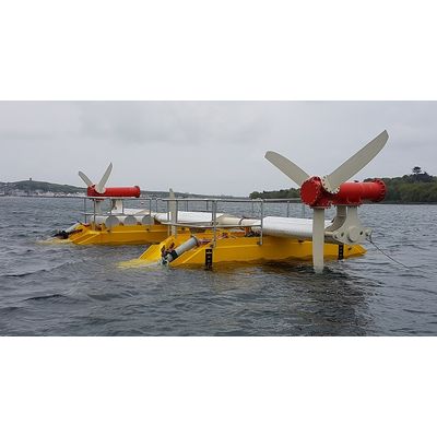 The Subhub Tidal Platform is a submersible, seabed mounted, gravity based platform that supports every need of tidal turbines through there lives and also acts to significantly enhance yield from the tidal site. Subhub is design to be fully integrated at the quayside or in the dock where the whole platform including the tidal turbines is commissioned and fully tested prior to departure. It can then be towed to the tidal site for installation in a single, quick and process. Subhub has unique properties where is more stable in the dive condition, fully submerged, than it is in the transit condition for tow. It is also self aligning to the flow. This process is control remotely through the Subsea Manifold acting at a safe distance from the Subhub on a support vessel or installation barge where all the mechanical and electrical control equipment is accessible. The Subsea Manifold also provides access to the electrical export cable for quick and easy dry mate connection and disconnection.