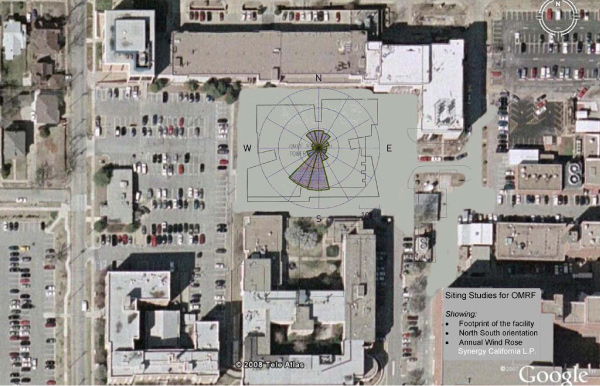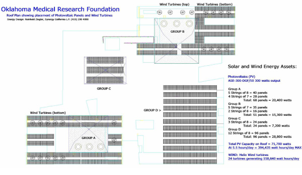 Below: The Roof Plan showing the placement of solar and wind energy collectors.