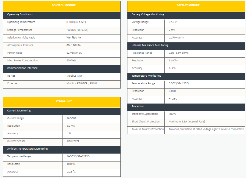 Located at the center of the Alpais system, the Control Unit offers a complete solution for monitoring unlimited number of batteries with its integrated hardware and software. Alpais provides you with the maximum availability of your backup power infrastructure generated by the batteries, allowing you to have the best benefit, you have made an investment for the battery.
