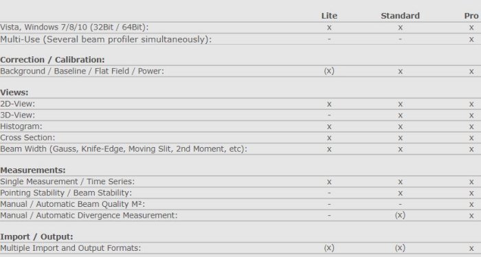 • Multiple beam profilers support (up to 8 beam profiler on one PC)