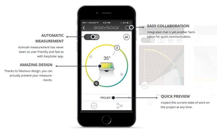 Compass is one of the basic tools for collecting information. With EasySolar you can check the azimuth even easier. What’s more you will save this data inside the cloud.