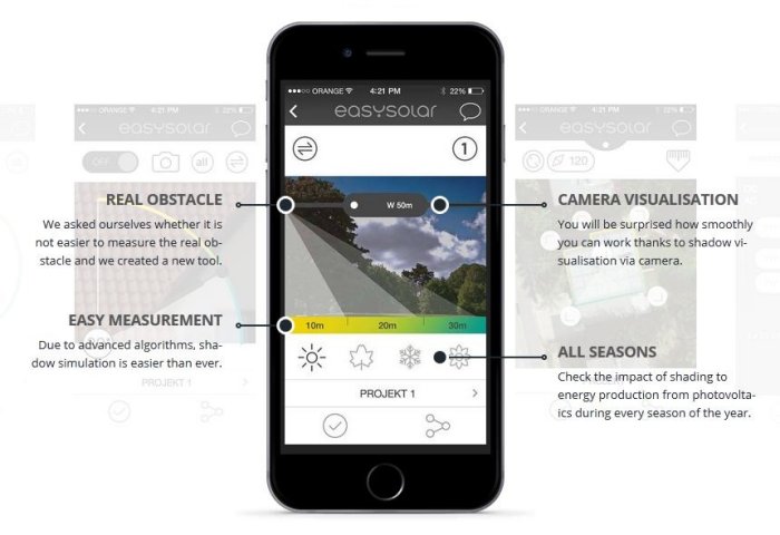 The app is available from every place on any device. The only thing you need to communicate with your team, share your projects and send them to your customers is the access to the Internet. Due to cloud technology you can also use advanced algorithms that calculate the output energy production, you are able to verify the irradiation level or check the possible shadowing using just your smartphone. Additionally, thanks to the fact that apart from your disc, your projects are also saved inside the cloud, safety and easiness in getting back the data is guaranteed (for example in the event of a breakdown of your favourite device).