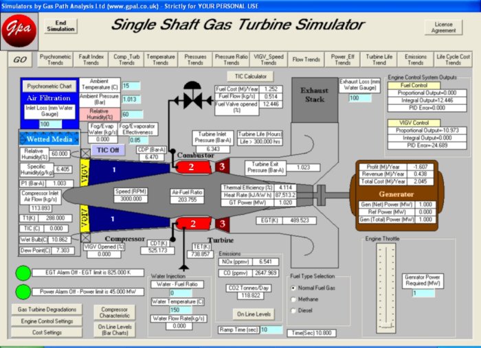 Now for about the cost of a one hour on-line (web) course on gas turbines you can use our simulators indefinitely gaining invaluable insight and experience into gas turbine performance and operability.