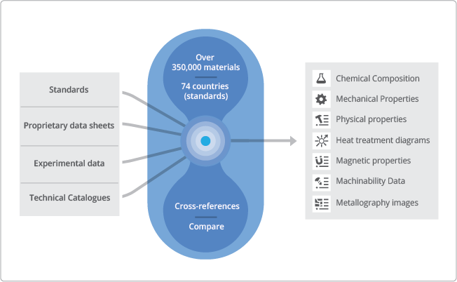 Total Metals is by far the world’s largest database for metallic material properties and sits at the core of the Total Materia product offering serving as the gateway for an unparalleled collection of datasets and modules which serve the global engineering community. Focused on providing standard metal properties data, Total Metals provides you with a staggering 15,000,000 property records for over 350,000 materials from 74 countries/standards.