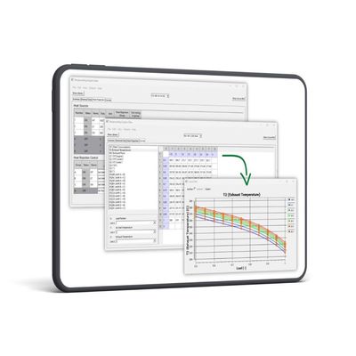 The ENEXSA Reciprocating Engine Library data sets describe power, heat consumption, exhaust temperature, exhaust flow and various heat sources (HT, LT, Oil, Jacket) with respective shift of heat as a function of temperature and load. The correlations are provided as two-dimensional matrices. The sample screen shot shows the correlation of exhaust temperature and engine load fraction with inlet temperature as the secondary parameter.