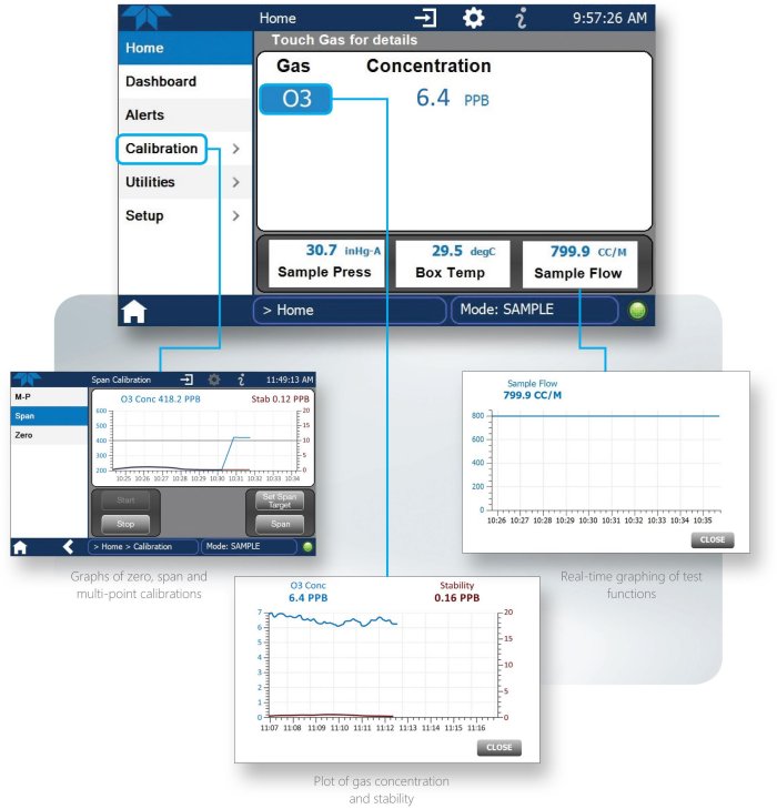 A premier interface for the Teledyne API (TAPI) T Series product line. Full touch screen navigation, instantaneous graphing, customization, and event logging all at your fingertips on the NumaView Software platform. An instrument that is running NumaView Software can be accessed remotely using the NumaView Remote software. Both NumaView instrument software and NumaView Remote software are provided at no additional charge.