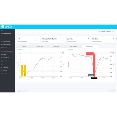 Our cloud-based software is able to predict inverter faults status before they actually occur, allowing O&M operators and field technicians to take actions to reduce plants low performances. The real-time service is capable to continuously monitor the status of the wind turbines of your farm and perform the real-time failure prediction at component level, exploiting the most performing Machine Learning algorithms in order to detect unhealthy status of wind plant. The detection is ensured by models which are trained on a comprehensive set of input. The big data i-EM’s IT infrastructure allows to ingest and manipulate large and heterogeneous set of data.